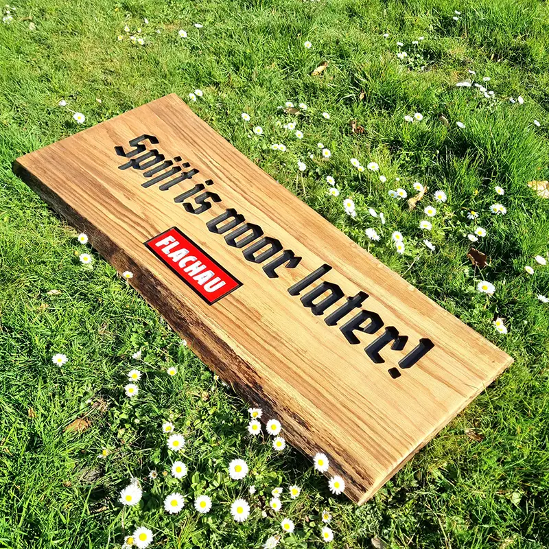 Elk gefreesd bord wordt volledig op maat gemaakt. Wij luisteren naar jouw wensen en ontwerpen het bord precies zoals jij het wilt. Geef bij de bestelling in de bestelnotities door welke tekst, lettertype of stijl je wilt, zodat wij snel kunnen starten.